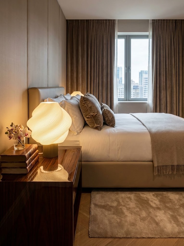 La base, solida e ritmata da linee verticali, introduce un contrappunto materico che dona equilibrio e stabilità alla composizione. Il contrasto cromatico e formale tra base e diffusore genera un dialogo sofisticato tra terra e luce, struttura e poesia. Pensata per interni ricercati, questa lampada non è solo un elemento d’arredo, ma una dichiarazione di stile: un lusso essenziale, silenzioso, capace di trasformare lo spazio in un’esperienza sensoriale intima e senza tempo.