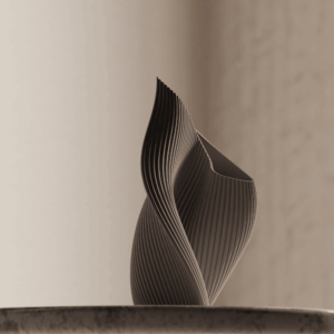 Questo vaso rappresenta l’incontro tra design contemporaneo, sostenibilità e ricerca formale, trasformando un materiale moderno in un oggetto di lusso consapevole. La sua silhouette sinuosa, definita da una torsione elegante e continua, richiama un movimento naturale e fluido, come se la forma fosse stata modellata dal tempo e dalla luce.