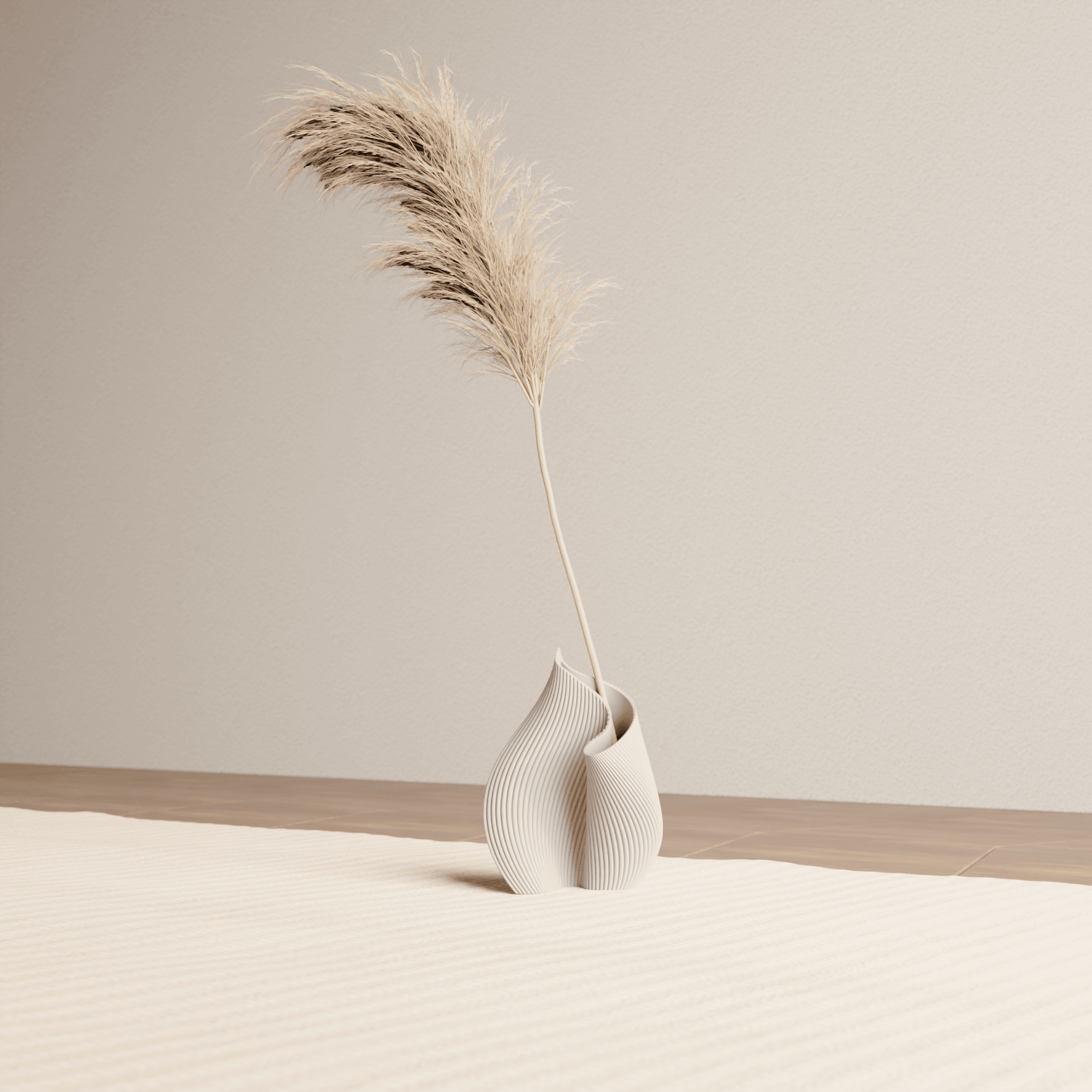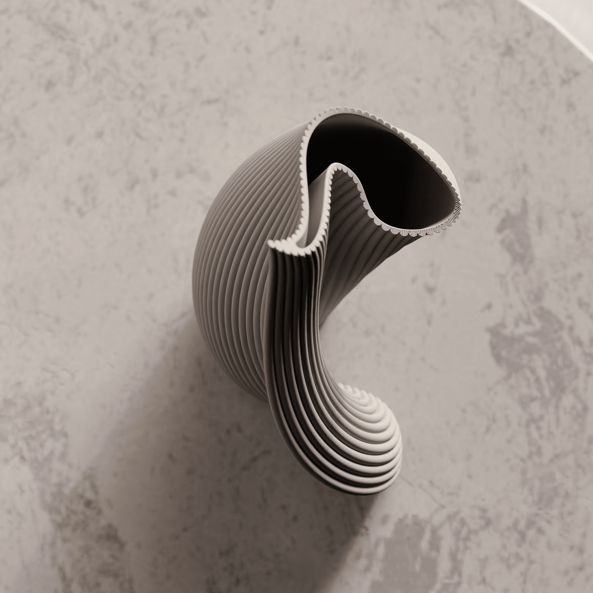 Questo vaso rappresenta l’incontro tra design contemporaneo, sostenibilità e ricerca formale, trasformando un materiale moderno in un oggetto di lusso consapevole. La sua silhouette sinuosa, definita da una torsione elegante e continua, richiama un movimento naturale e fluido, come se la forma fosse stata modellata dal tempo e dalla luce.